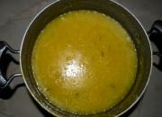 در قابلمه مناسبی برنج را همراه با 3 لیوان آب روی حرارت متوسط بپزید تا برنج نرم شود و حدود نصف لیوان از آب باقی بماند.