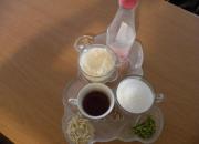 همه ی مواد را با هم مخلوط میکنیم تا آرد برنج در شیر سرد حل شود