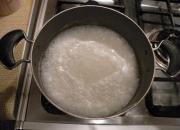 برنج (پخته نشده) خام را در آب در طول شب خیس کنید؛ برای هر فنجان برنج، دو فنجان آب برای خیس خوردن و در یخچال قرار دهید.