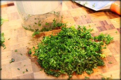 گشنیز و جعفری خورد شده سه قاشق چایخوری