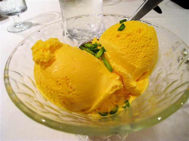 خودش را بگیرد و کاملاً یخ زده و سفت شود. در پایان آن را با قاشق در بشقاب